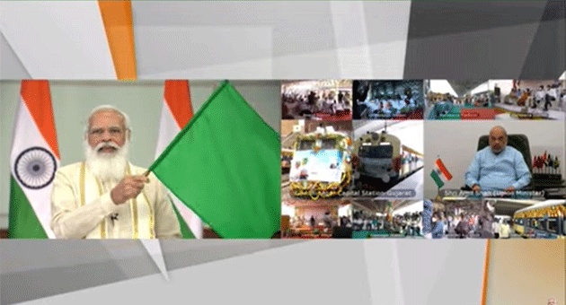न्यूज़ डेस्क। पीएम नरेन्द्र मोदी ने शुक्रवार को गुजरात को कई डेवलपमेंट प्रोजेक्ट की सौगात दी। वीडियो कॉन्फ्रेंसिंग के जरिए आयोजित कार्यक्रम में पीएम मोदी ने गांधीनगर के पुनर्विकसित रेलवे स्टेशन को लोकार्पण किया, पुनर्निर्मित वडनगर रेलवे स्टेशन उद्घाटन किया और गांधीनगर-वाराणसी ट्रेन को भी हरी झंडी दिखाई। इस दौरान प्रधानमंत्री मोदी ने गांधीनगर-वरेथा मेमू ट्रेन को भी हरी झंडी दिखाई। उन्होंने अहमदाबाद में गुजरात साइंस सिटी का भी लोकार्पण किया।