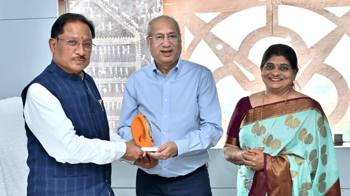 रायपुर। मुख्यमंत्री विष्णु देव साय से आज मंत्रालय महानदी भवन में नारसी मोंजी इंस्टीट्यूट ऑफ मैनेजमेंट स्टडीज (NMIMS) के प्रतिनिधि श्री जगदीश वी पारिख ने सौजन्य भेंट की। मुलाकात के दौरान प्रदेश में उच्च शिक्षा के क्षेत्र में किए जा रहे विशेष प्रयासों तथा नई संभावनाओं पर विस्तृत चर्चा हुई।