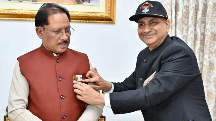 रायपुर। मुख्यमंत्री विष्णु देव साय से आज राजधानी रायपुर स्थित मुख्यमंत्री निवास कार्यालय में छत्तीसगढ़ राज्य सैनिक कल्याण बोर्ड के सचिव ब्रिगेडियर विवेक शर्मा ने सौजन्य भेंट की। इस अवसर पर उन्होंने मुख्यमंत्री श्री साय को सशस्त्र सेना झंडा दिवस के प्रतीक स्वरूप सम्मान बैज लगाया तथा संचालनालय सैनिक कल्याण द्वारा संचालित विभिन्न कल्याणकारी गतिविधियों एवं योजनाओं की विस्तृत जानकारी प्रदान की।