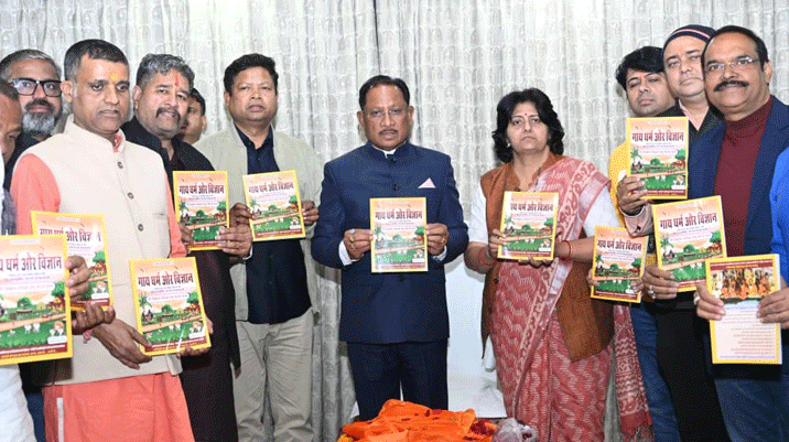 मुख्यमंत्री विष्णु देव साय ने ‘गाय धर्म एवं विज्ञान’ ग्रंथ का किया विमोचन