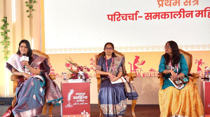रायपुर। रायपुर साहित्य उत्सव के पहले दिन लाला जगदलपुरी मण्डप में आयोजित साहित्यिक कार्यक्रम के प्रथम सत्र में “समकालीन महिला लेखन” विषय पर गहन एवं सार्थक परिचर्चा संपन्न हुई। इस सत्र में सुश्री इंदिरा दांगी, सुश्री श्रद्धा थवाईत, सुश्री जया जादवानी तथा सुश्री सोनाली मिश्र ने सहभागिता करते हुए महिला लेखन की बदलती भूमिका और उसकी सामाजिक प्रासंगिकता पर अपने विचार रखे।