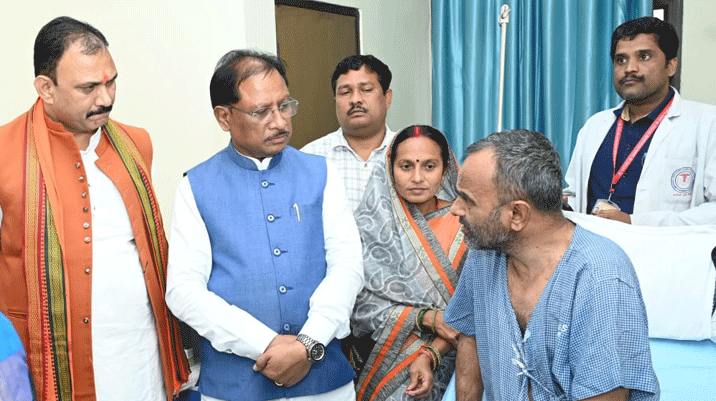 रायपुर। मुख्यमंत्री विष्णुदेव साय ने राजधानी रायपुर के टाटीबंध स्थित एम्स रायपुर में भर्ती सुरजपुर जिले के विशंभर यादव से मुलाकात कर उनका कुशलक्षेम जाना। मुख्यमंत्री श्री साय ने चिकित्सकों से श्री विशंभर यादव के स्वास्थ्य की जानकारी ली और बेहतर इलाज के लिए आवश्यक दिशानिर्देश दिए। मुख्यमंत्री श्री साय ने एम्स रायपुर में श्री नीलू गुप्ता का भी हाल-चाल जाना। मुख्यमंत्री श्री साय को श्री नीलू गुप्ता ने बताया कि वे और श्री विशंभर यादव एक साथ ही सड़क दुर्घटना में घायल हुए थे। मुख्यमंत्री श्री साय ने श्री…