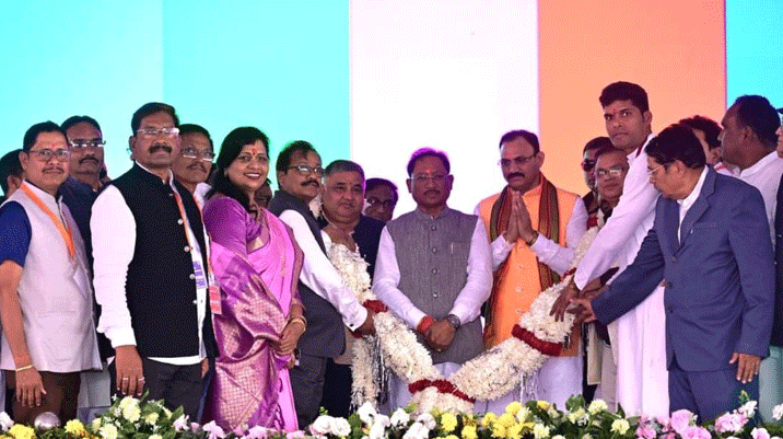 रायपुर। मुख्यमंत्री विष्णु देव साय आज बिलासपुर जिले के रतनपुर में आयोजित कल्चुरी कलार समाज के महासम्मेलन में शामिल हुए। उन्होंने भगवान सहस्रबाहु एवं बहादुर कलारीन दाई की पूजा-अर्चना कर विशाल सम्मेलन का शुभारंभ किया। मुख्यमंत्री श्री साय ने कहा कि धार्मिक नगरी रतनपुर के समग्र विकास के लिए केंद्र सरकार की प्रसाद योजना के अंतर्गत 200 करोड़ रुपए की कार्ययोजना स्वीकृति के लिए भेजी गई है, जिसकी जल्द स्वीकृति की संभावना है। उन्होंने रतनपुर में 100 बिस्तर वाले अस्पताल की स्थापना तथा कल्चुरी समाज के सामुदायिक भवन के निर्माण…