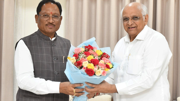 मुख्यमंत्री विष्णु देव साय ने गांधीनगर में गुजरात के मुख्यमंत्री भूपेंद्र पटेल से की सौजन्य भेंट
