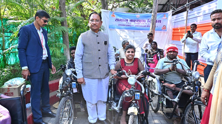 रायपुर। मुख्यमंत्री विष्णु देव साय ने आज मुख्यमंत्री निवास कार्यालय में आयोजित जनदर्शन कार्यक्रम के दौरान दिव्यांगजनों की समस्याओं का संवेदनशीलता के साथ त्वरित समाधान किया। इस अवसर पर जरूरतमंद दिव्यांगजनों को बैटरी ट्राइसिकल, व्हीलचेयर एवं श्रवण यंत्र प्रदान किए गए। मुख्यमंत्री श्री साय ने जनदर्शन में आरंग से आए भारत साहू को बैटरी चालित ट्राइसिकल प्रदान किया, श्री साहू ने बताया कि अब उन्हें कहीं आने-जाने के लिए दूसरों पर निर्भर नहीं रहना पड़ेगा। पहले किसी के समय मिलने पर ही वे बाहर जा पाते थे, जिससे उन्हें काफी…