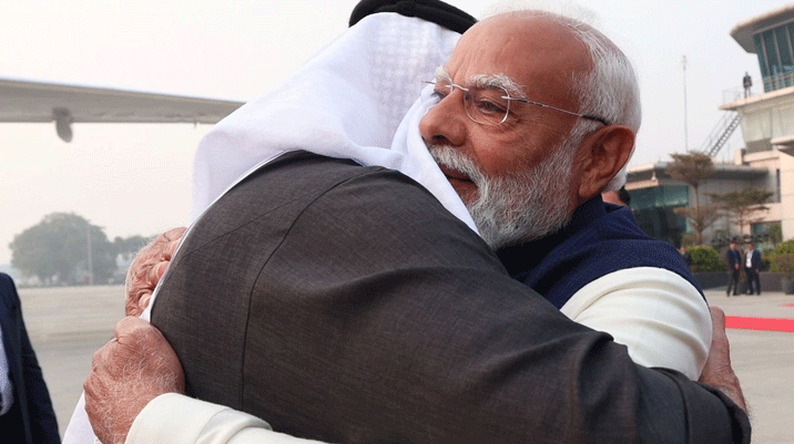 नई दिल्ली। प्रधानमंत्री नरेंद्र मोदी ने सोमवार (19 जनवरी) को संयुक्त अरब अमीरात (UAE) के राष्ट्रपति शेख मोहम्मद बिन जायद अल नाहयान का दिल्ली एयरपोर्ट पर स्वागत किया। खास बात यह रही कि प्रधानमंत्री ने तय प्रोटोकॉल से हटकर खुद एयरपोर्ट जाकर उनका अभिनंदन किया। शेख मोहम्मद बिन जायद अल नाहयान करीब दो घंटे के बहुत ही छोटे दौरे पर भारत आए हैं। एयरपोर्ट पर दोनों नेताओं के बीच गर्मजोशी से मुलाकात हुई और उन्होंने एक-दूसरे को गले लगाया। इस नजारे से भारत और यूएई के बीच मजबूत और भरोसेमंद…